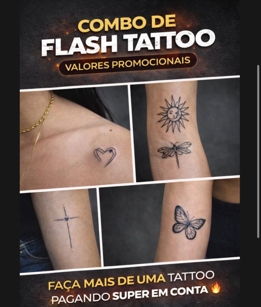 Combo promocional de tatuagens de até 6 centímetros ,valores a partir de 100,00